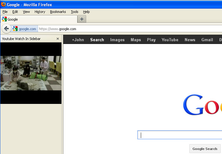 Now that you have a running YouTube video in the sidebar, what next? Can you leave the YouTube page where the video was located? Of course you can, if you couldn’t then there would be very little sense in having this YouTube in sidebar Firefox addon installed. On the image below you can see that we have opened up Google and the video kept on playing in the sidebar.