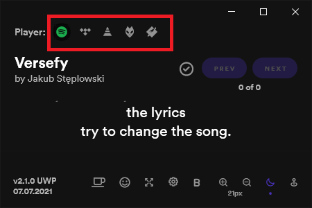 Free Lyrics Finder for Spotify, Tidal, VLC, Winamp: Versefy