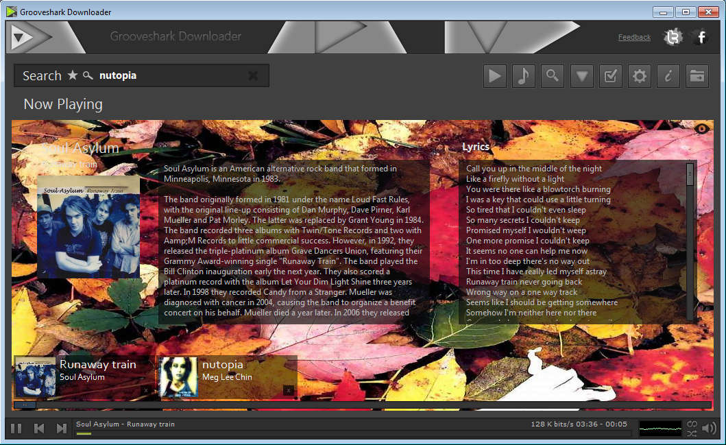 Grooveshark Downloader is a free tool which you can use in order to listen and download music from various different internet sources, with automatic retrieval of album art, artist wallpapers, basic artist information and of course song lyrics, all of which are gonna be displayed to you while you’re listening to music.