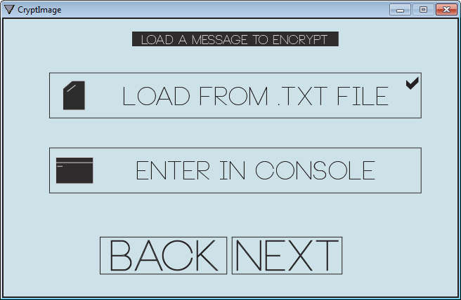 Click Next and you’ll be presented with a step where you need to enter text to the image. It can either be loaded from a text file or entered through the console. We decided to go with the first option and selected a text file. Once again we clicked Next and the image with encrypted text was created. To decrypt messages click Decrypt on the main menu and go through the wizard once again. Only now select the image with encrypted text, enter the pass phrase and let CryptImage decipher your message.
