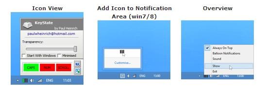 • Gives visual notifications, balloon notification, and sound alerts.keystate balloon notification