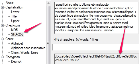 I like to use hashes when I am sending an important file to someone. This helps the receiver to verify the file integrity and letting him/her know that it’s not corrupt or tampered. Though, there are other hash algorithms, MD5 and SHA are the common ones. You can copy the message and paste it into the white box and click on the Checksum option to expand it. Choose the checksum you like to use and there you go. You have the unique hash for the text entered.