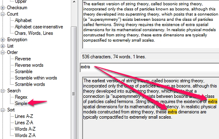 This software is a portable one, so no installation is required to use it. You can use the Count Tool within this software to get number of letters, words, and lines in the text. This text manipulation tool also has an excellent Sort functionality to sort the text in alphabetical order. It can even highlight links entered into the text box.
