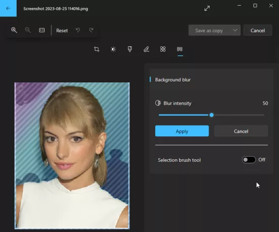 Finally, when you are all set, just click on the Apply button and then save the changes. Before that, you can configure the intensity of the blur tool if you want.