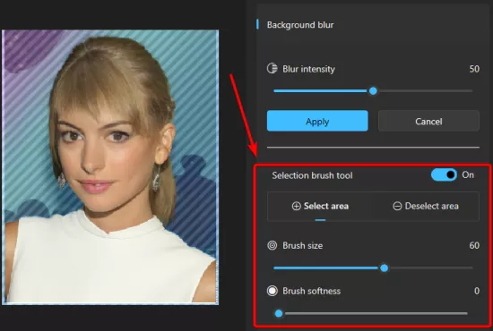 Apart from blurring background automatically, you can also manually highlight the part in the photo that you want to blur. This is useful if the tool fails to select the complete background. With a manual brush, you can guide it to fill all the background and once you do that, it will generate a perfectly blurred photo.