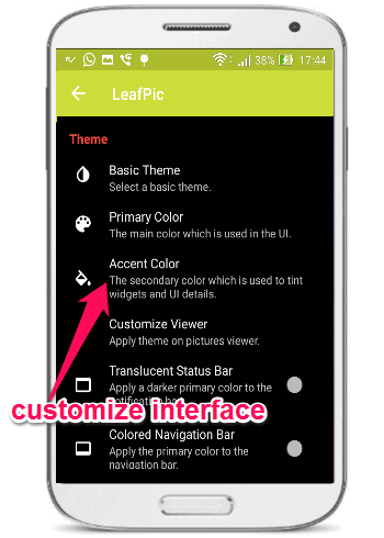 It comes with an immersive and material designed interface with grid-based layouts, responsive transitions, and decent padding. Unlike other gallery apps for Android, you can also customize the interface in any way you want with 50 primary colors for UI, 3 different themes, 9 accent colors for UI details and widgets, translucent status bar, etc.