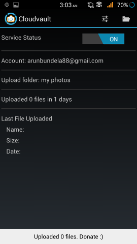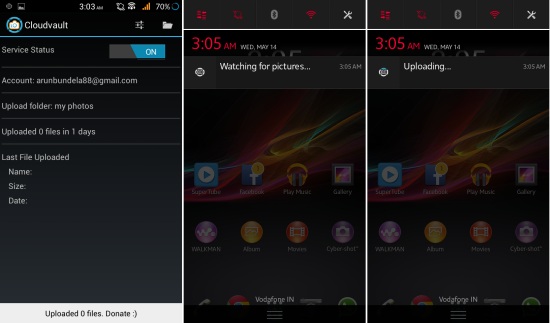 CloudVault Photo Uploader for Android is great solution for automatically uploading photos to your Google Drive. In this manner you can view your images and videos on multiple devices. Also this backups up your photos and video. The app provides features which allows you to manage the way the app works. The interface of CloudVault Photo Uploader very straightforward and easy to use. Also check out Photo Uploader for Drive App which is a similar app.