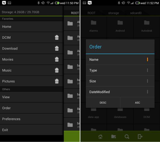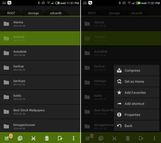 This free file manager follows a minimal and intrusion free interface. Despite the minimalism, Fo File Manager packs lots of functions and options. Additionally it also gives you access to your system files as it comes with a built in root file explorer.