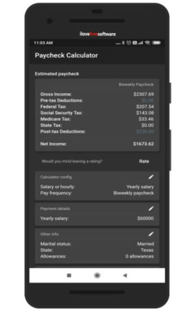 Paycheck Calculator is a free Android app also, available for iPhone to calculate your after tax income. The app is for US taxes only. If you receive your salary every week, biweekly, or monthly, you want to know how the in hand salary has been calculated. The salary slip you receive often does not have all the details on it.