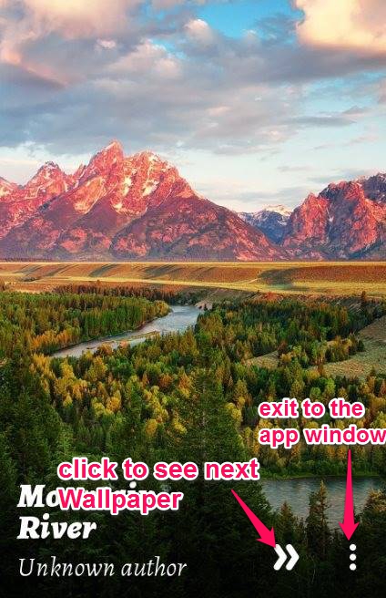 - Click on this to activate the HD Wallpaper. Once you do that, you can see the HD Wallpaper. Now click on the next button to see the next HD wallpaper, or click on the vertical dots on the screen to exit to the HD Landscapes window.
