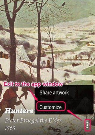 - Open the Muzei-live Wallpaper app on your phone. Once you open this application, you will see the wallpaper in the Muzei-live wallpaper that has already been set on your phone. You can see three vertical dots on bottom right corner of your screen, tap on it and then click on “Customize”.