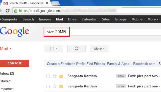 After entering the value, you need to press the “Search” button and the emails with bigger attachments (having size greater than 10 MB) will be sorted and displayed to you. You can then, check and delete these mails to free up space in your Gmail account.