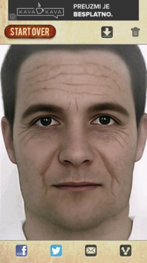 After selecting the image, you’re gonna need to adjust the markers (eyes, mouth and chin) so that the app knows on which sections of the image the effect needs to be applied. When you’re done with that, tap on the Start button to start the conversion. This old face effect app takes you 30 years into the future.