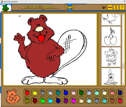 Despite being portable and small in size, Ari Coloring Book still comes with an impressive collection of images for coloring, 40 of them to be more precise. Pick them from the vertical strip on the right. Paint bucket tool is automatically selected, and the color pallet can be seen at the bottom of the screen.