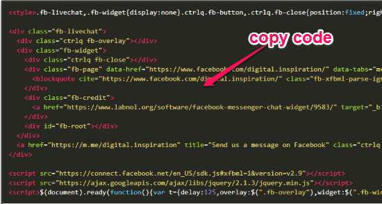 Step 2: After you do that, you would need to replace “digital.inspiration” from the code with your own Facebook page name. You can also customize the widget just by editing the code like you can change the widget of the widget, opacity, height, etc. Once done, simply save the changes.
