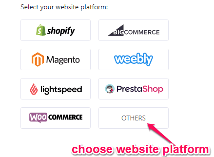 Step 1: After you open the homepage of Quick Facebook Chat, simply click on the “Install App” button. After you do that, you would need to select your website platform among Shopify, Magento, Weebly, etc. If your website is on any other platform then select “Others”.