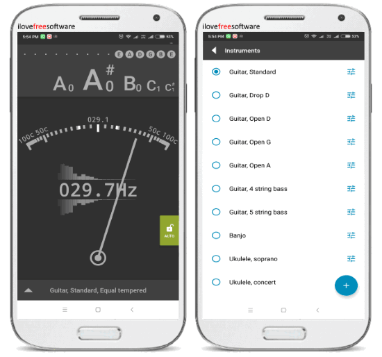 Unlike the above apps, this one doesn’t have any manual mode to tune your guitar. In addition to Guitar, you can tune Mandolin, Charango, Banjo, Balalaika, Ukulele, and some other instruments with this app. You will also find features like chromatic mode, reference frequency selector, display additional info of the tunings, and more.