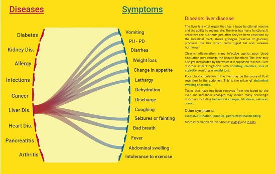 This is a unique Pet Symptoms Checker tool that provides you with an interactive diagram to understand how and where Pet symptoms overlap and gives you valuable information regarding the conditions.