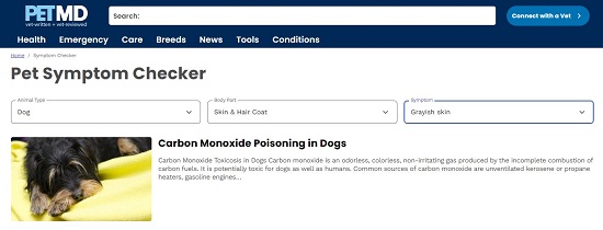 Click here to navigate to PetMD Symptoms Checker.