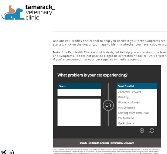 Click here to navigate to Tamarack Pet Health Checker