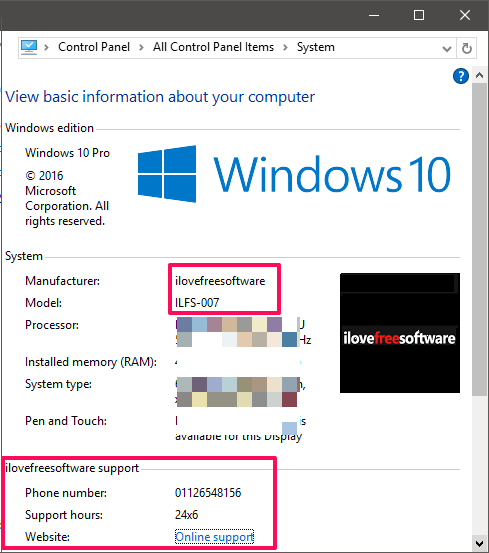 Here are 5 free software to modify OEM information of any PC. Using these free software, you can easily change the Manufacturer name, model, logo, website, contact, etc. Some of these software come with advanced set of features using which you can even customize the Processor and computer name. Also, I have listed a registry tweak to do the same. So depending on what suits your needs, you can give a try to any of these.