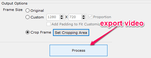 Step 3: When you’re done selecting the specific area on the video which you want to crop, simply click “OK” to proceed. Now, you can export the cropped video by simply clicking on the “Process” button at the bottom of the main window.