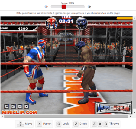 The second last website in the list is Fan Free Games which offers multiple wrestling games. Each of the available games is free to play and has unique game play. In some of them; you have to fight with opponent, some are jigsaw puzzles based, etc. When you will click on any game to play, the website shows a description and game controls on the left side. Apart from the description on left, the game also has tutorial to help you get familiar with the game play.