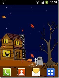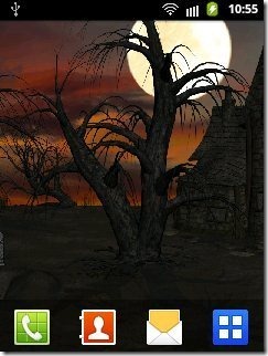 Halloween Live Wallpaper provides you the animated Halloween live wallpaper on Android screen. The unique part of this Android live wallpaper app is that, it works with time of sunrise and sunset in the day. The wallpaper background changes according to sunrise and sunset. The app automatically tracks your current location and works accordingly. The animated wallpaper displays a scary house, a dry tree, and flying leaves. All these look scary and quite perfect for Halloween season.