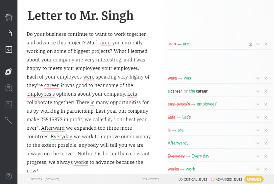 Apart from its excellent functionality, being an online tool makes it platform independent. It is also available on both dominating mobile platforms, Android and iOS. This cross-platform availability makes it the best online text correction tool.