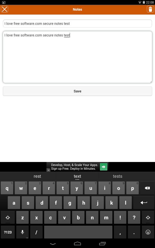 Secure Notes by Rocklegs is another one of those simplistic secure note taking apps for Android, like Password Notes, that doesn’t let you format text in any way.
