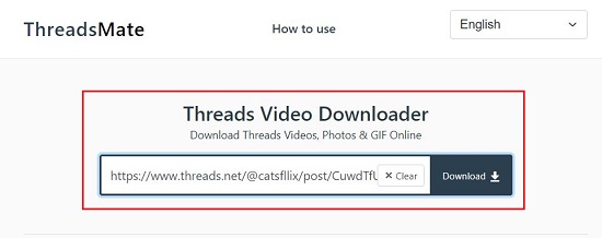 This is an online tool that helps you to easily download Threads videos in MP4 format with HD resolution. Just click on the link that we have provided below to navigate to ThreadsMate, paste the Threads video URL and click on ‘Download’.