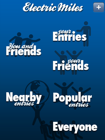 When you have logged into the app, you will see 5 options on the home screen: Your Entries, You and Friends, Your Friends, Nearby Entries, Popular Entries, and Everyone.