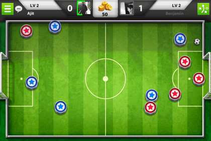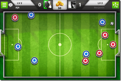 The gameplay of Soccer Stars is quite simple and easy to play. In this game, both teams consist of 5 players; each labeled in form of discs. To hit the ball, simply tap and hold on the disc which you want to use to hit the ball and you will see the arrow. Now move your finger without lifting it to move the arrow in the direction where you want to hit the ball. You can also pull your finger in backwards direction (without lifting) t0 gather the power and then lift your finger to hit the ball. The distance traveled by ball depends upon the direction in which the ball is hit by you and the power by which you hit the ball. Generally, the player who scores 2 goals first wins the game while the number of goals can also vary depending upon the level of the match.