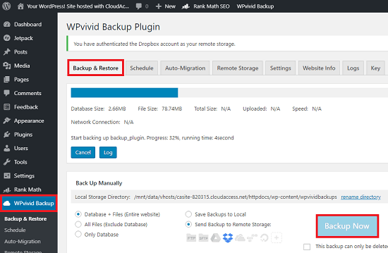 If you follow these steps carefully, then at the end of Step 5 you have successfully migrated the WordPress site. You can use this simple and powerful plugin in this way whenever you want to migrate your site. Not only migration but you can use it to create and save backup of your site. And you can opt to save the backup of your site locally on the web server or you can move that backup to external cloud storage as well, such as Dropbox. For that, you just have to authorize the services in the “Remote Storage” tab.