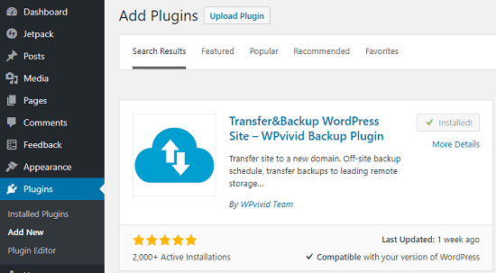 Step 1: Install this WPvivid Backup Plugin in both the websites. To install this, you can search it in WordPress plugins directory and then install it, activate it.