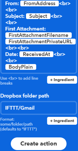 Once you are done with the template options, click on the Create action button to finish the process of creating the IFTTT applet to automatically backup Gmail emails to Dropbox. Below you can see an email that is saved to my Dropbox after following the steps mentioned above.