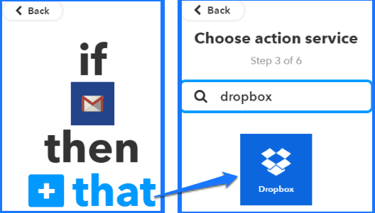 Step 4: After that, click on “+ that” button and then select Dropbox as the action service.