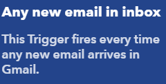 Step 3: Now, select “Any new email in inbox” option as the trigger which will be fired every time you’ll receive a new email in Gmail. You can also choose to fire this trigger only when emails of a particular Gmail label arrive.