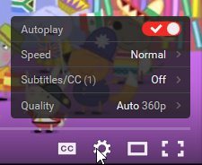 Step 2: In the video player window, look at the bottom right corner. You will see a settings icon, click this icon. This will bring up a pop up window as shown below.