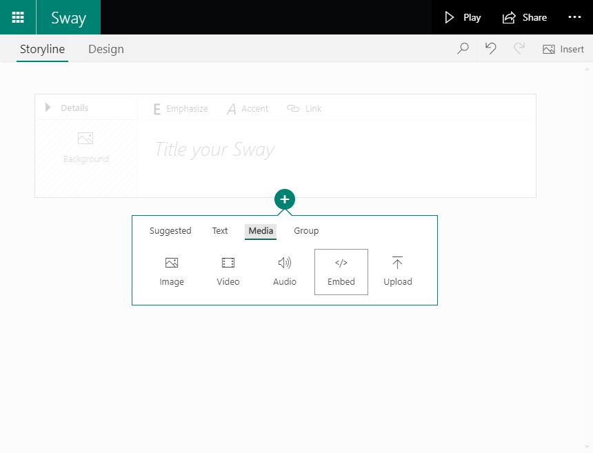 The embed feature in Microsoft Sway lets you add any type of embeddable content in your sway document. This covers web pages, widgets, code, designs, illustrations, media, social media posts, reports, and more as long as you have the embed code for that.