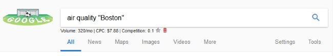 The answer is pretty simple, Google. You can go to the google home page, and in the search bar write Air Quality “name of city” and search. This can be seen in the screenshot below.