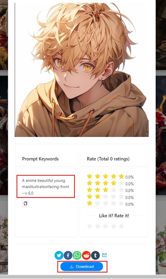 4. Wait for a few seconds and the search results will be presented on the page. Like earlier, you can click on any image to read the prompt that was used in its generation as well as download it to your computer.