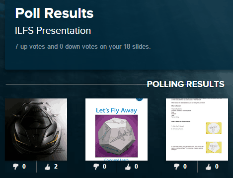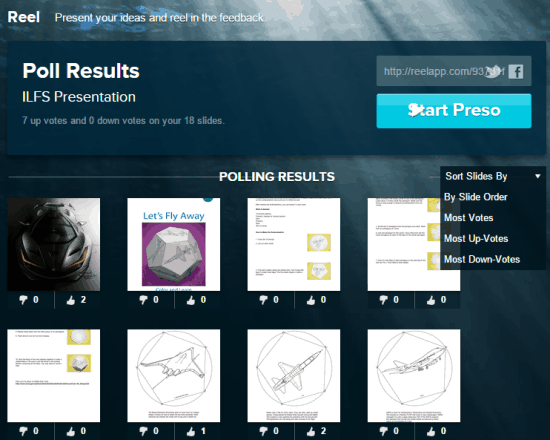 You can also share your presentation with others and people can upvote and downvote any slide. You also get the poll results to check how many likes or dislikes are collected for each individual slide of your presentation. So, the website is good enough to create, share presentations, and get the response from others. However, do note that your presentations remain public only and there is no feature to create an account to store the presentations. You must copy and keep the URLs of your presentations to access them whenever needed.