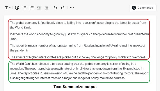 4. For example, if you wish to transform any text, highlight it, choose ‘Transform text’ from the command palette, and type the command on how you wish to transform such as summarizing it or making it more professional or friendly and more.