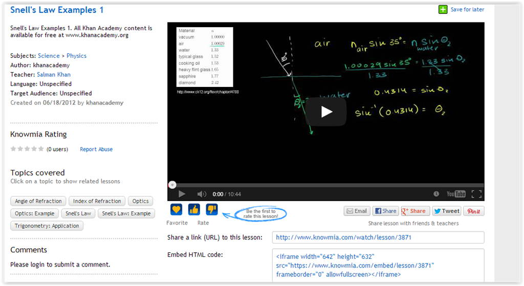 You will see all the tutorials related to the topic you selected. Just click on any tutorial to view it. The video will be played in a new window. You can share the video using the URL and embed it to your web page as well. The website also lets the students to mark the video as favorite and save it for viewing later but this option is only for registered user.