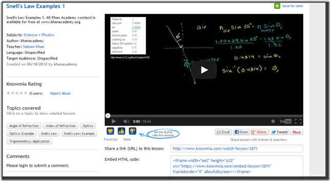 The website lets the students/teachers to mark the lessons that they like as favorite and to save the tutorials for viewing later.