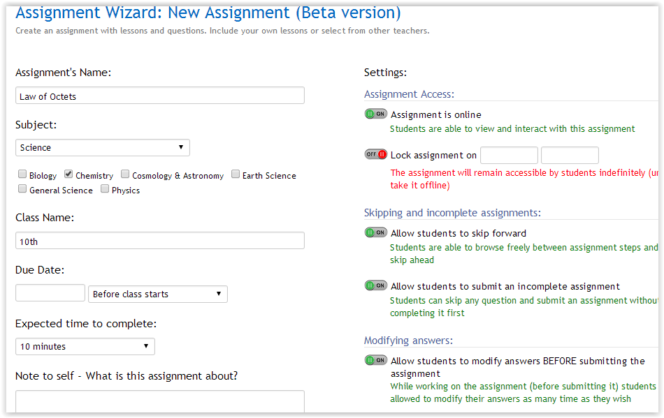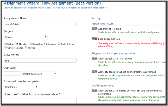 The website lets you set the different Settings to the assignments to decide how others can interact with it. The website provides you with a unique URL for the assignment which you can share with your students so that they can have a look at it.
