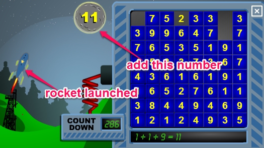 - Addition Blast Off: In this game, a numbers window will be shown to you, and you need to add a given number as early as possible to launch the rocket. Quite interesting, even elders will find it difficult to launch rockets quickly.