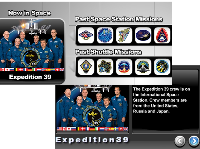 The main menu on this service provides three sections. First section will help you to explore your knowledge about NASA past space station missions, present mission (now in space), and past shuttle missions.