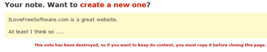 * If you make your mind about not sharing the message, then open the URL in your web browser by clicking on ‘destroy it now’ link.
